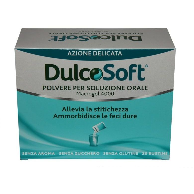 Dispositivo medico per il trattamento sintomatico della stitichezza occasionale e per ammorbidire le feci. DulcoSoft ha un'elevata capacità di reidratare e ammorbidire le feci dure, facilitandone l'evacuazione e dando una sensazione di sollievo. DulcoSoft ha un meccanismo di azione fisico e svolge la sua azione in maniera delicata: non viene assorbito dall'organismo e non da origine alla produzione di gas. La componente principale è Macrogol 4000, un lassativo ad azione osmotica e che trattiene l'acqua. Agisce come trasportatore d'acqua e ne ritarda l'assorbimento intestinale, determinandone un aumento della quantità nel colon. Ammorbidisce le feci e aumenta il loro volume. È adatto dagli 8 anni, anziani, donne in gravidanza (sotto controllo medico), celiaci e diabetici. DulcoSoft è infatti senza aroma, senza zucchero e senza glutine.